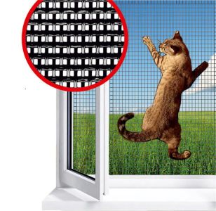 Москитная сетка “антикошка” - пылезащитный экран из металлического, пластикового каркаса и полотна, устойчивого к точечным разрывам, смещению отдельных волокон. Рамочные москитные сетки из стекловолокна выдерживают вес средних по размеру кошек и собак, других домашних животных, удары клюва неагрессивных, небойцовых птиц (мелких попугаев, канареек). Мелкие ячейки сетки не пропускают внутрь комнат летающих насекомых (мошку, комаров, мух, слепней, оводов, пчел, ос, шершней). Такие сетки можно устанавливать на деревянные окна и пластиковые окна, а также в проемы дверей, балконных, входных и даже межкомнатных. Все зависит только от выбора системы крепления.